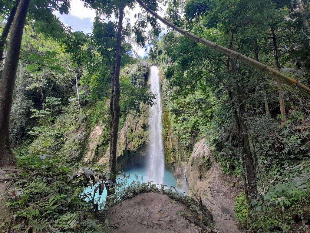 In reality it wasn’t THAT big, but that didn’t stop my brain constantly playing images of my head cracking open on hidden rocks, or my legs from locking into place any time I took a step forward towards the edge of the cliff. Jovit and the Kawasan Falls staff member waited patiently at the bottom as I proceeded to step towards the ledge and then backed away…again…and again…and again. I just couldn’t do it. Fear had set in and whilst my brain was telling me to jump, my body was not listening, stopping each time I went towards the edge. The guides below were getting bored. They’d run out of topics for small-talk and my own guide’s arms were aching from holding up my phone to film my plunge. I thought that I’d better hurry up. I had people waiting on me…